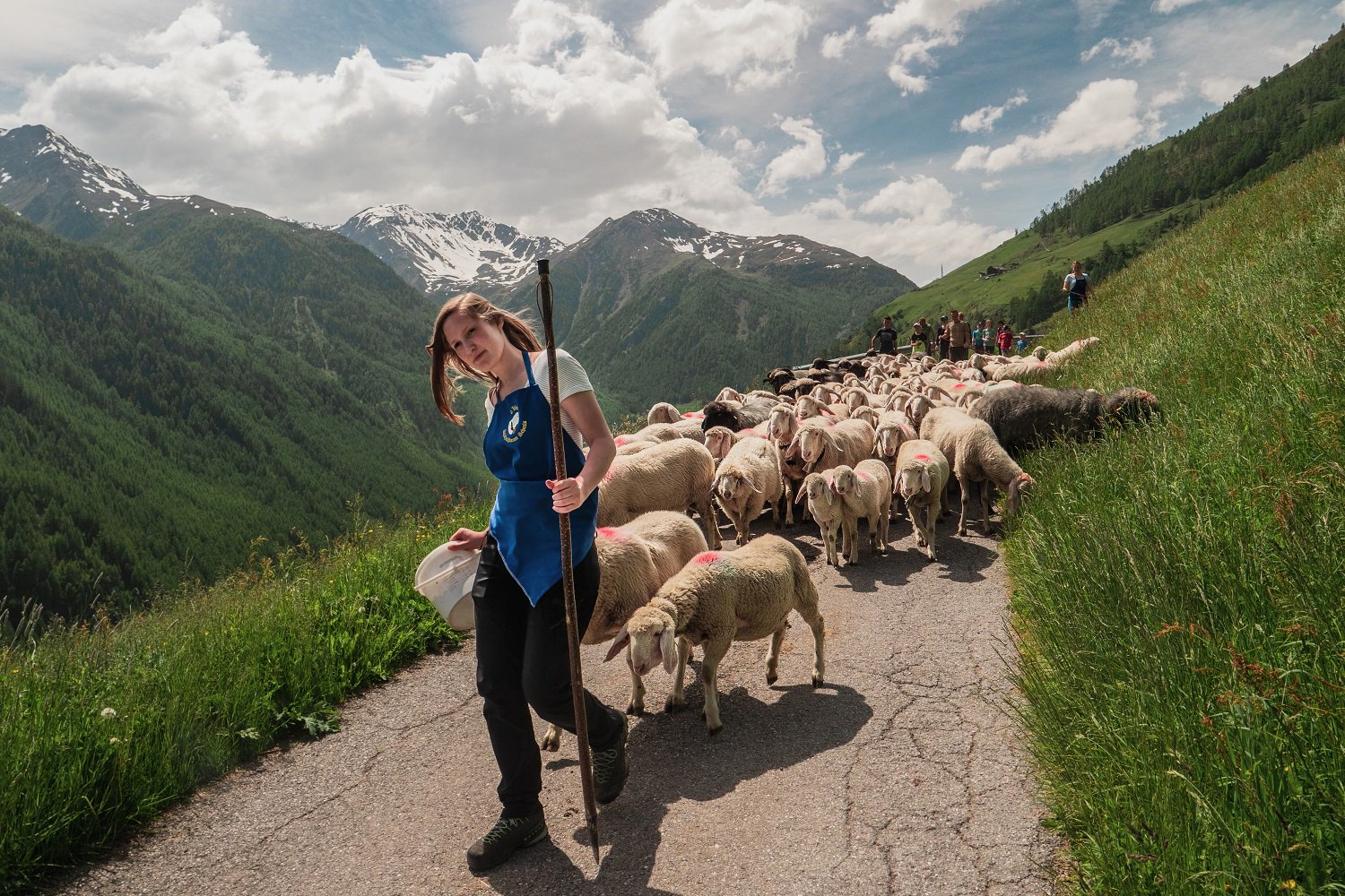 Aiutare con tua figlia undicenne i contadini nel tradizionale trasporto delle pecore dalla Ötztal alla Val Senales altoatesina? Oh sì, è possibile, anche se alla fine la figlia sarà più intelligente dei genitori.
