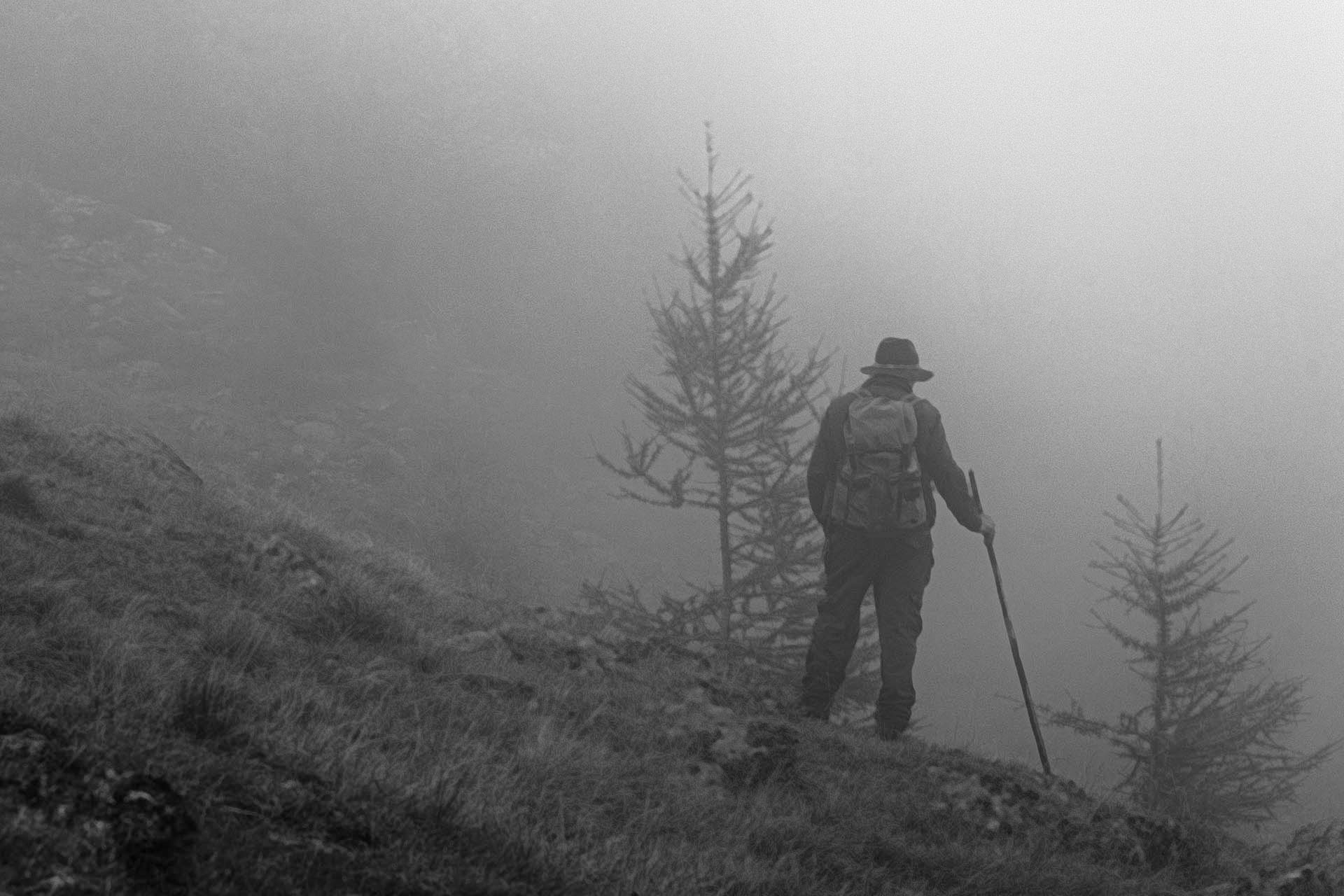 Le pecore erano tutte in piedi nella neve. Mercoledì sono arrivati il presidente, Gernot Patzelt e altri due allevatori. Non appena è stato possibile, l’elicottero dell’esercito ha portato su il fieno. In seguito il tempo è stato sempre brutto, con nebbia e nevicate. Giovedì sono andato a “Langtal”. Siggi mi ha detto: “Non andare nella “Schwärze””. Ma sapevo di avere ancora 58 pecore lì. La “Schwärze” è un luogo pericoloso e ho detto che non ci andrò.