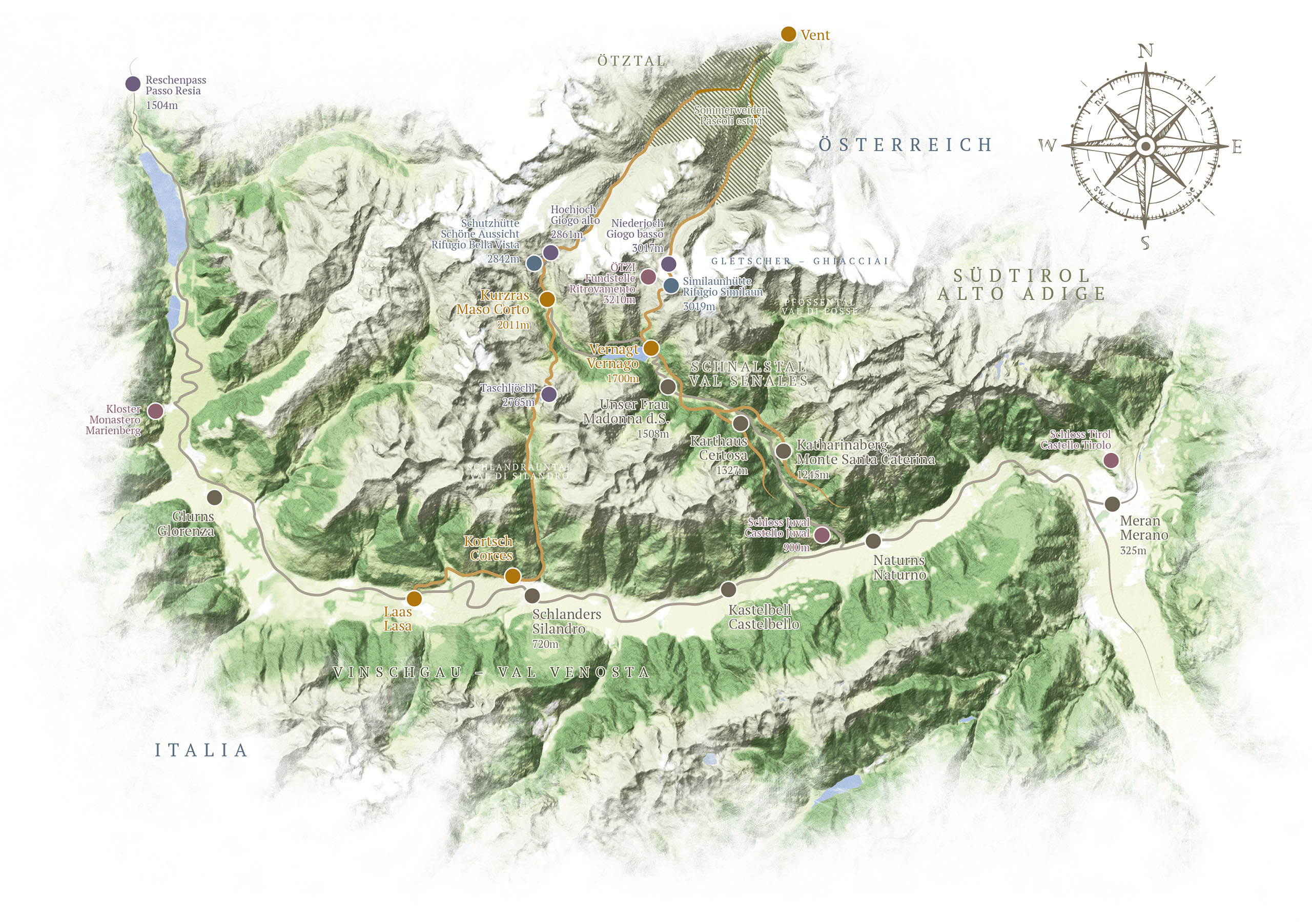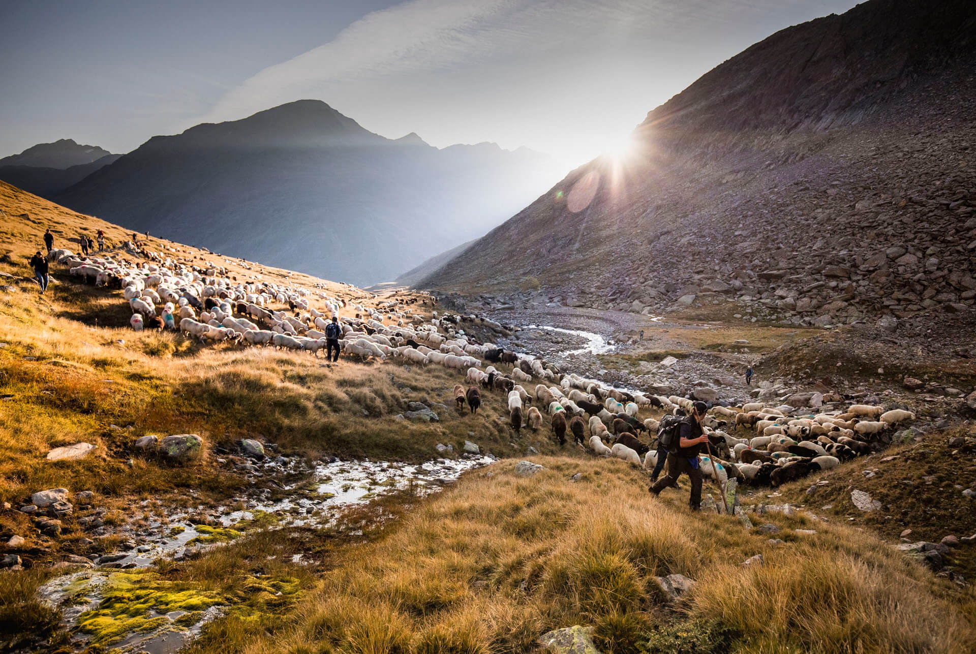 A metà giugno, quando gli alpeggi oltre la cresta principale delle Alpi sono liberi dalla neve, un buon quarto delle pecore di Lasa in Val Venosta inizia la “lunga marcia”, percorrendo oltre 44 km, 3.200 metri di dislivello e 1.800 metri di discesa. Le pecore con i loro pastori e cani seguono ora il cammino degli antichi scopritori della Val Senales. ↪Date attualiVERNAGT (1.700 M) – NIEDERJOCH (3.019 M) – NIEDERTALALM
