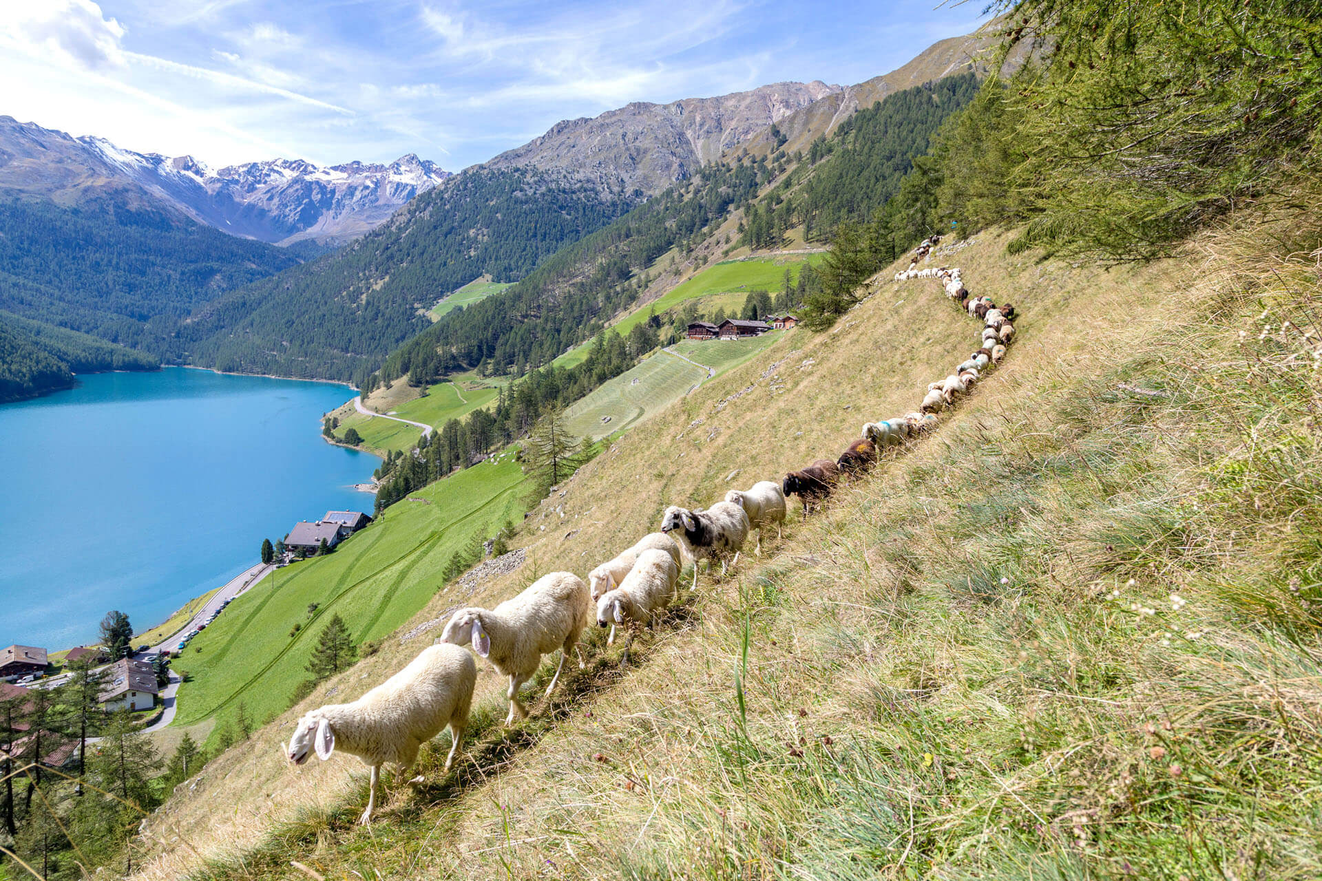C’erano anche quelle mandrie che da Nova Levante attraverso il Passo Carezza si spostavano verso i pascoli della Val di Fiemme. Un’altra transumanza, o alpeggio, che vale la pena menzionare almeno per l’altitudine raggiunta e il numero di animali, porta dalla Vallelunga in Alto Adige attraverso il Weißseejoch a 3.046 m s.l.m. fino ai pascoli della Kaunertal in Austria. Qualche anno fa le pecore erano 1.400, oggi sono solo circa 800. Questa forma di transumanza a tempi e luoghi stabiliti sopravvive ancora oggi grazie a regole precise codificate e aggiornate nel corso dei secoli.