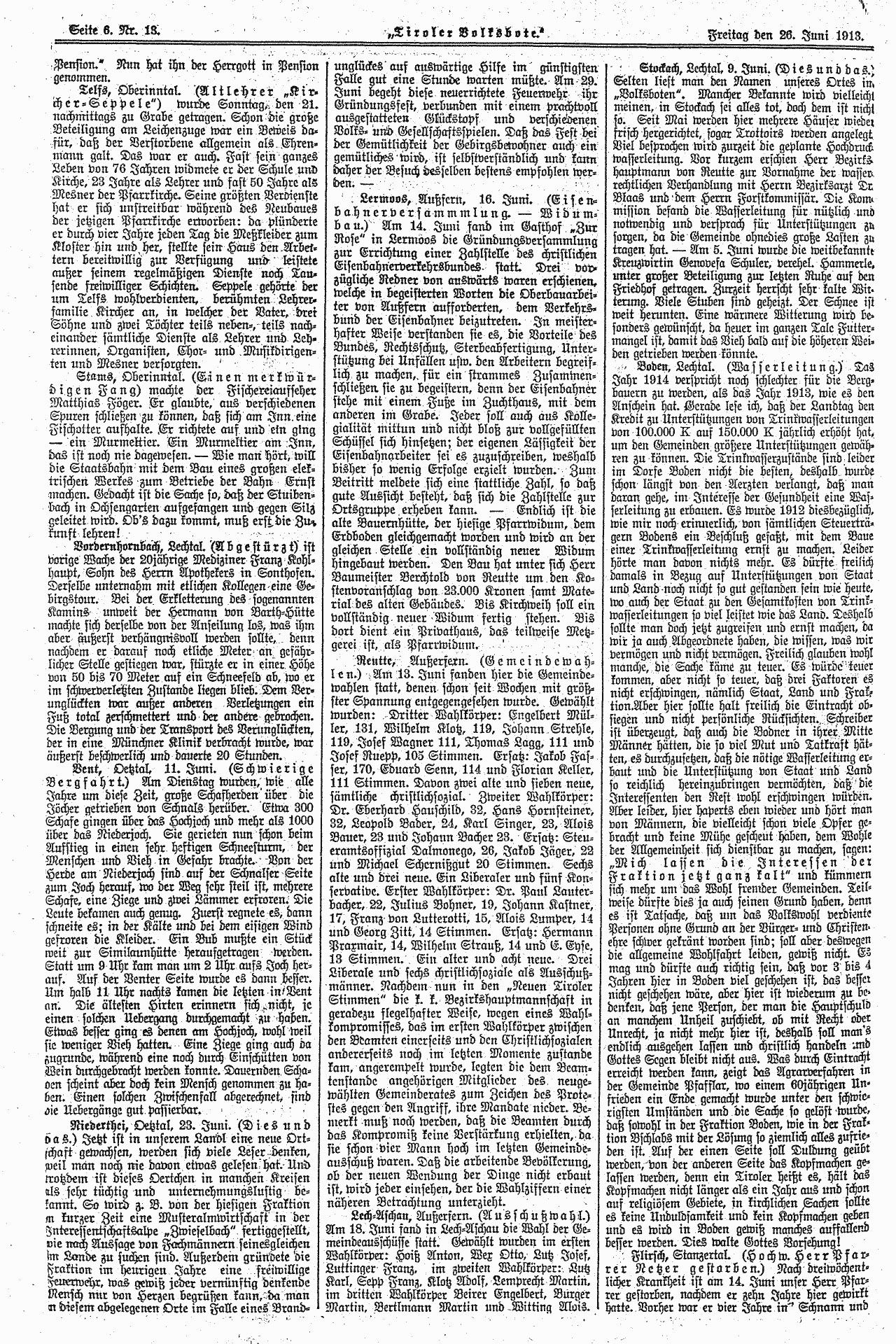 Da: Tiroler Volksbote, venerdì 26 giugno 1913, pagina 6