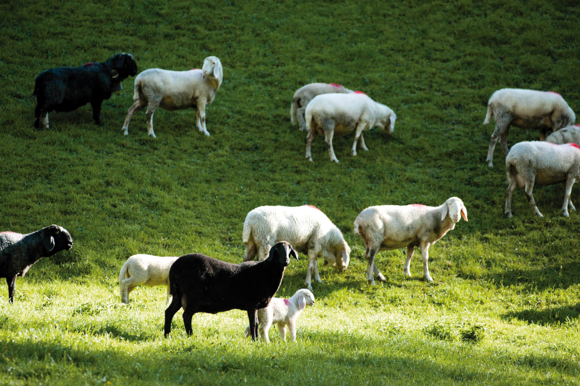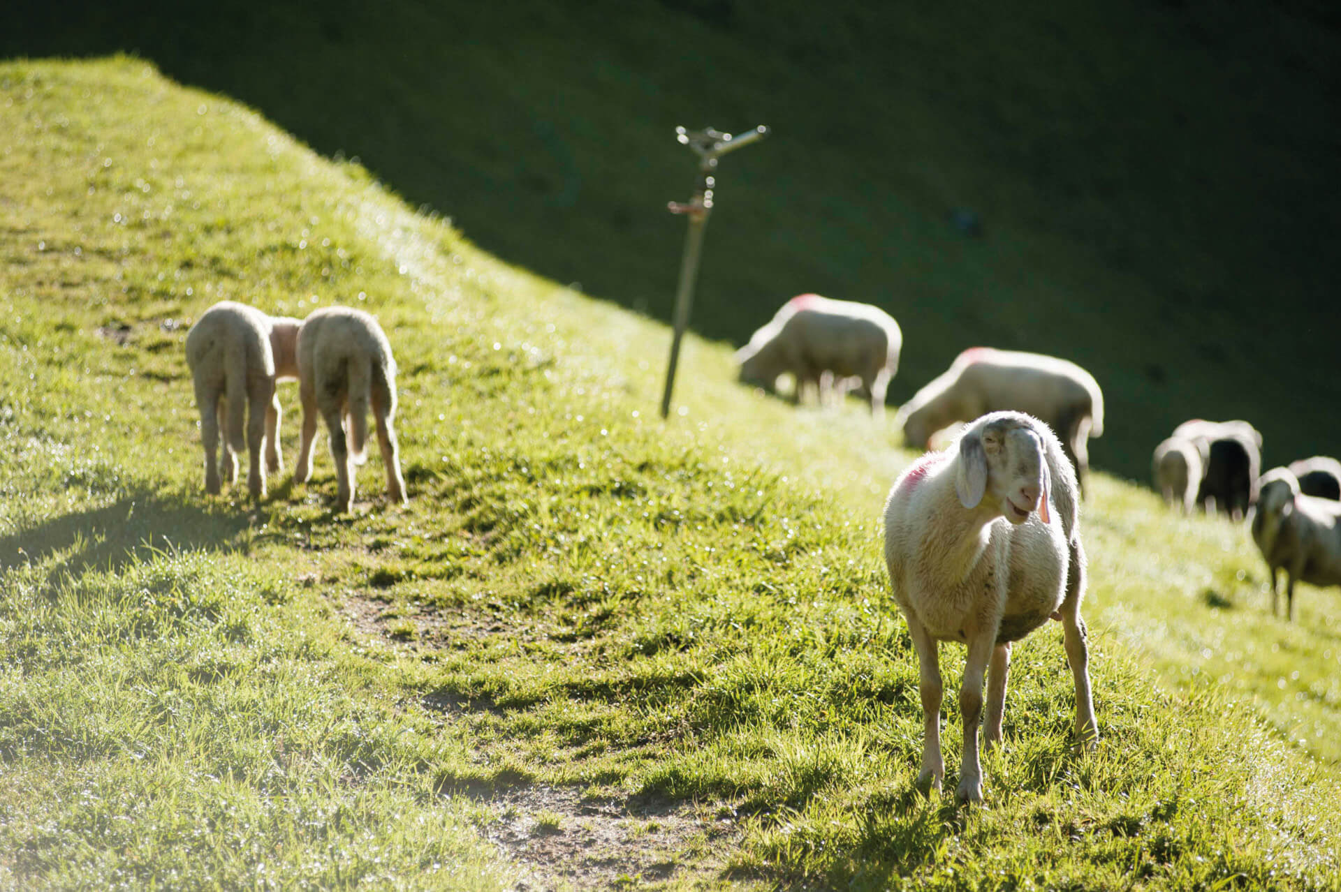 Stiamo guidando attraverso un tunnel. POI UN PRATO DI MONTAGNA SALISCE A SINISTRA. CIRCONDATO DA PECORE BIANCHE E NERE C’È WILLY GURSCHLER, IL PASTORE. QUANDO ARRIVIAMO LÌ, LA SUA MANDRIA SI ALLONTANA BALAING. TRANNE UNA PICCOLA PECORA. RESTA TRA NOI, Stuzzica le nostre giacche, CERCA VICINO A NOI. UN BAARE PER L’ATTENZIONE